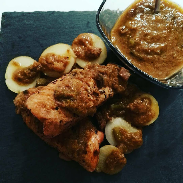 En el Lidl dan últimamente recetas en formato cartón y coleccionables,de una de estas recetas saqué la inspiración para este plato tan delicioso y suculento. Lo podéis acompañar de verduras salteadas o de papas arrugadas como hice yo.Preparé una salsita totalmente inventada sobre la marcha y la verdad es que el resultado fue divino. Este plato se puede cocinar y guardar para comer al día siguiente sin problemas. Tambien podéis elaborarlo con la carne que más os guste,ternera,cerdo....Las cantidades son para dos rollitos por cabeza,en mi casa somos dos así que utilicé cuatro filetes de pavo hermosos y de carnicería. En la foto de los ingredientes aparece salsa de soja pero al final no la usé. Os invito a descubrir un nuevo mundo en el que el pavo o pollo nunca es aburrido o soso.A por ello!!