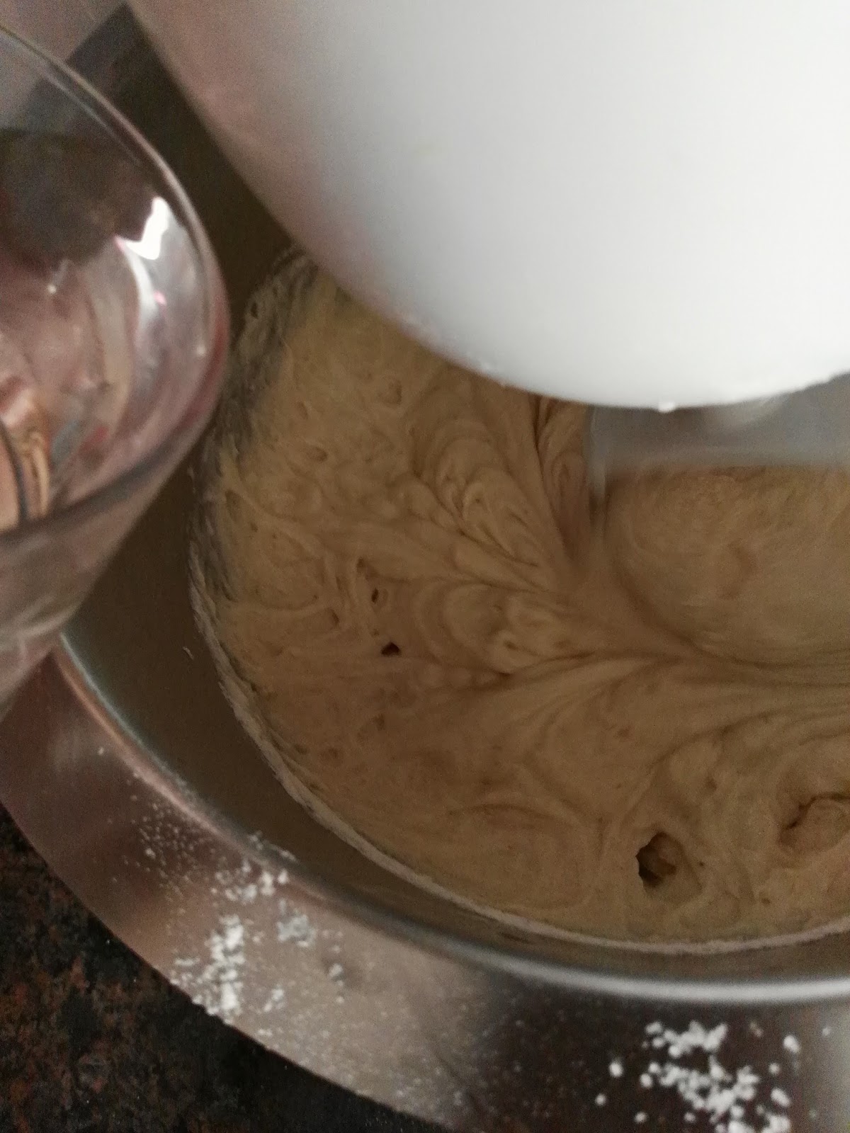 -A continuación integramos los huevos uno a uno. No añadimos el segundo sin que el primero este totalmente integrado. En este punto parecerá que la mezcla se nos ha cortado pero no os asustéis,se recupera enseguida.